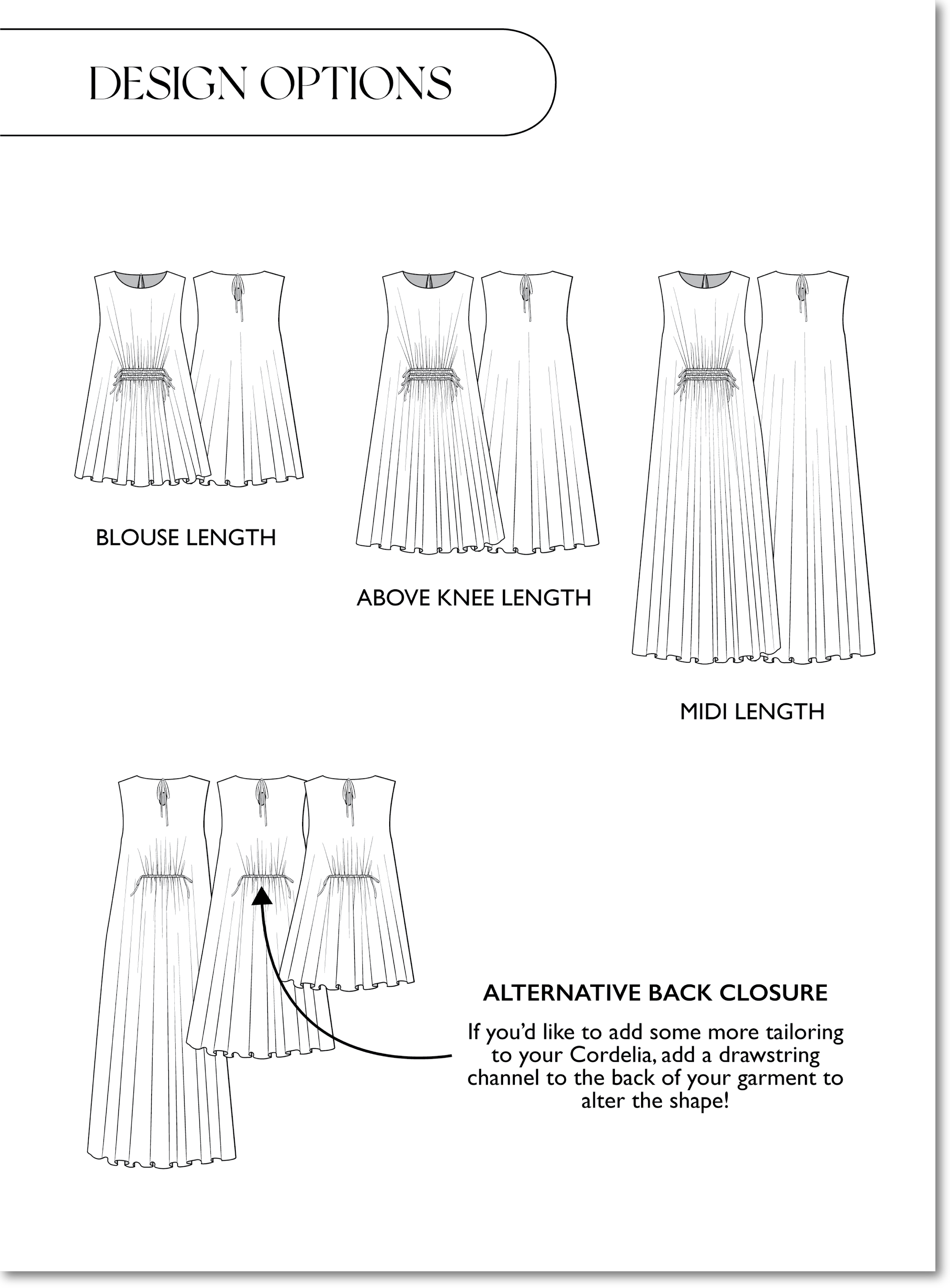 Fabric - The Cordelia pattern is designed for a mid to lightweight fabric such as a linen or compact cotton. However you can make it in whatever woven fabric you like depending on the look you’re going for.